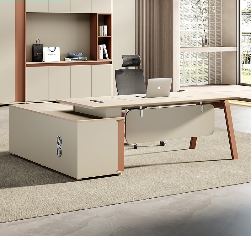 Featuring a sleek wood finish with dynamic accent details, this office desk enhances the visual appeal of any professional environment. In addition, its clean lines and contemporary style complement modern office interiors while maintaining a professional look. Furthermore, the contrasting wood accents add character and elegance, creating a desk that’s as visually striking as it is functional. As a result, it elevates the aesthetics of any workspace.