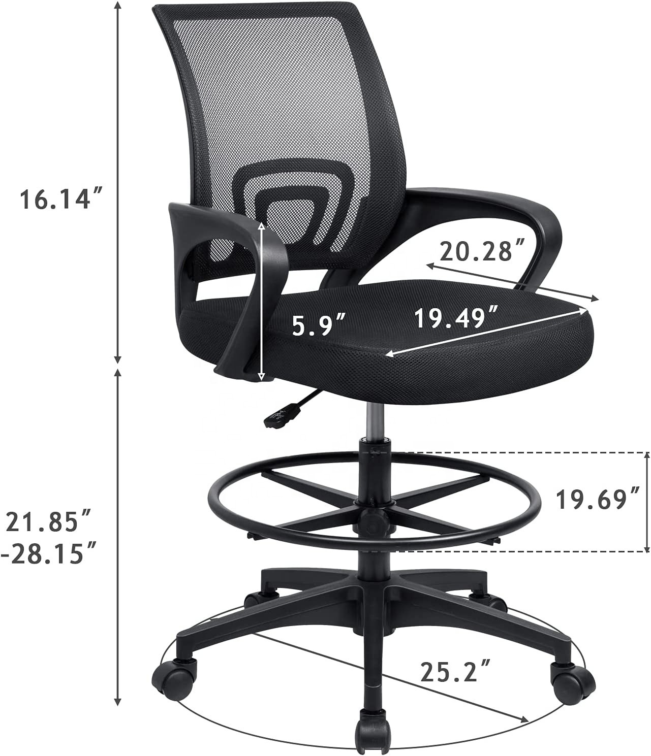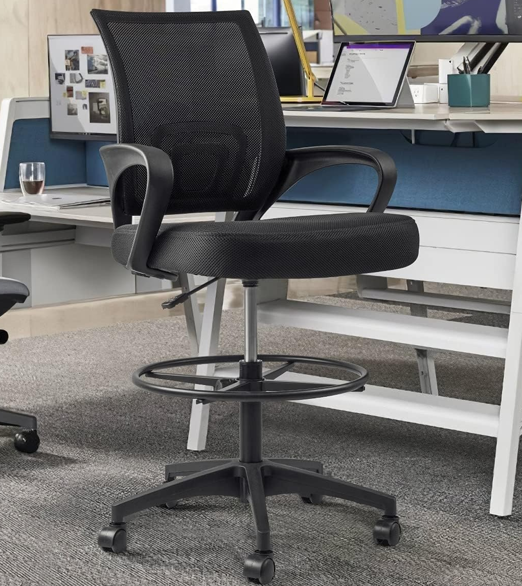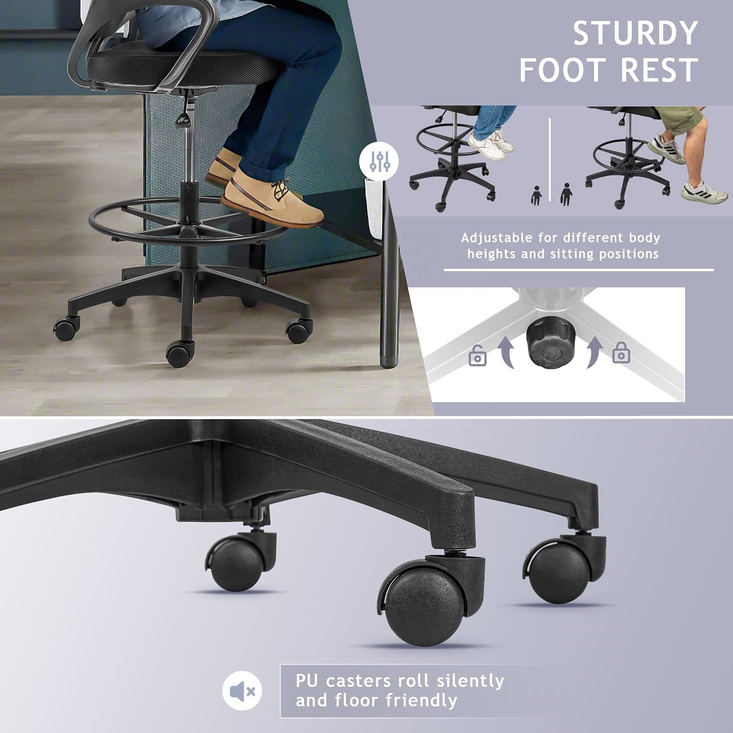 Adjustable Height: Easily modify the seat height for personalized comfort and ergonomic support. Ideal for cashiers, receptionists, and office staff.