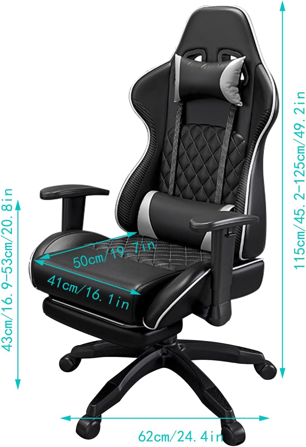 High-Back Ergonomic Design: Provides lumbar, neck, and shoulder support